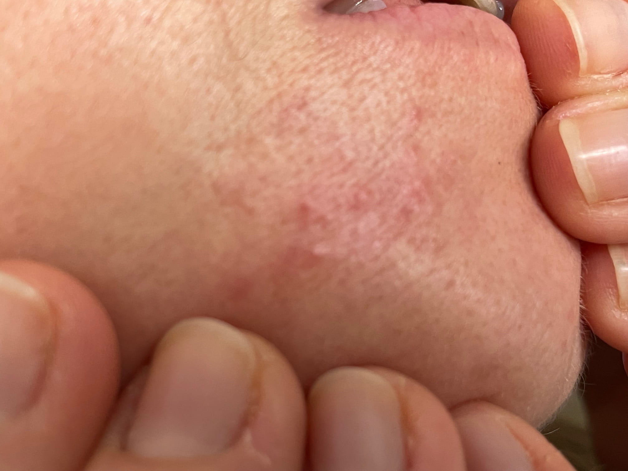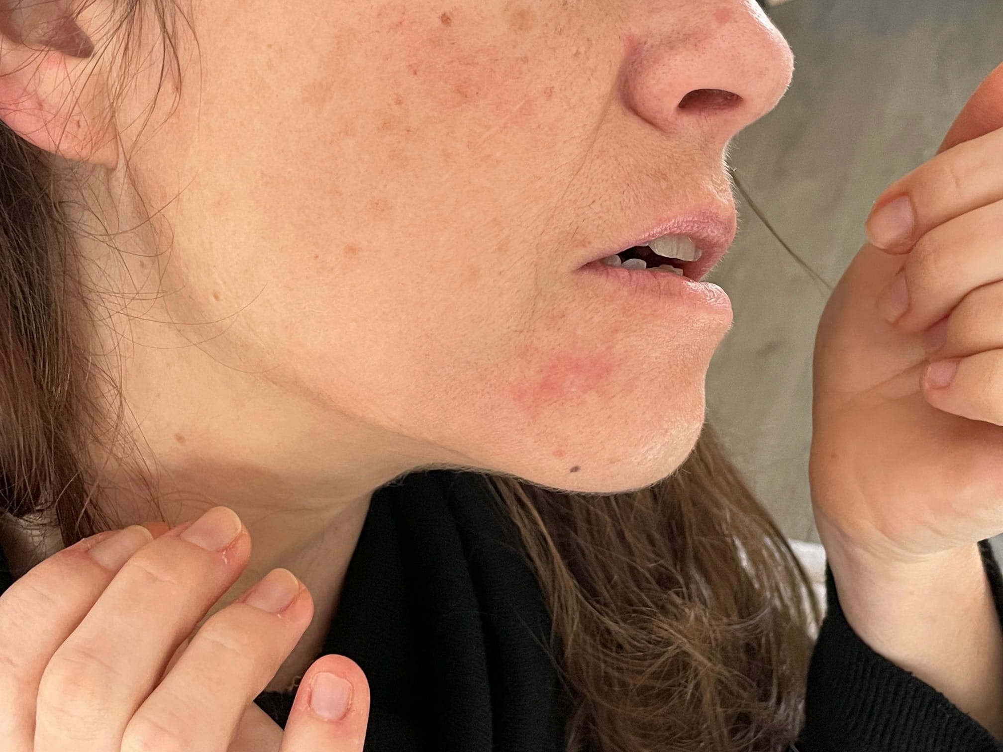 J'ai ce genre de plaque, sur le visage. Des rougeurs constitués de petits boutons, avec un liquide transparent à l’intérieur. J'ai testé depuis 7 jours une crème à base de cortisone ( je sais, il ne faillait pas mais j'en ai de plus en plus, 2 sur le nez, un autre sur le menton).... Impossible de prendre rdv chez un dermatologue dans mon secteur. La crème m'avait été prescrite par mon médecin traitant. Il n'avait avoué qu'il ne n'était pas spécialiste, mais si c’était un eczéma cela pourrait marcher.