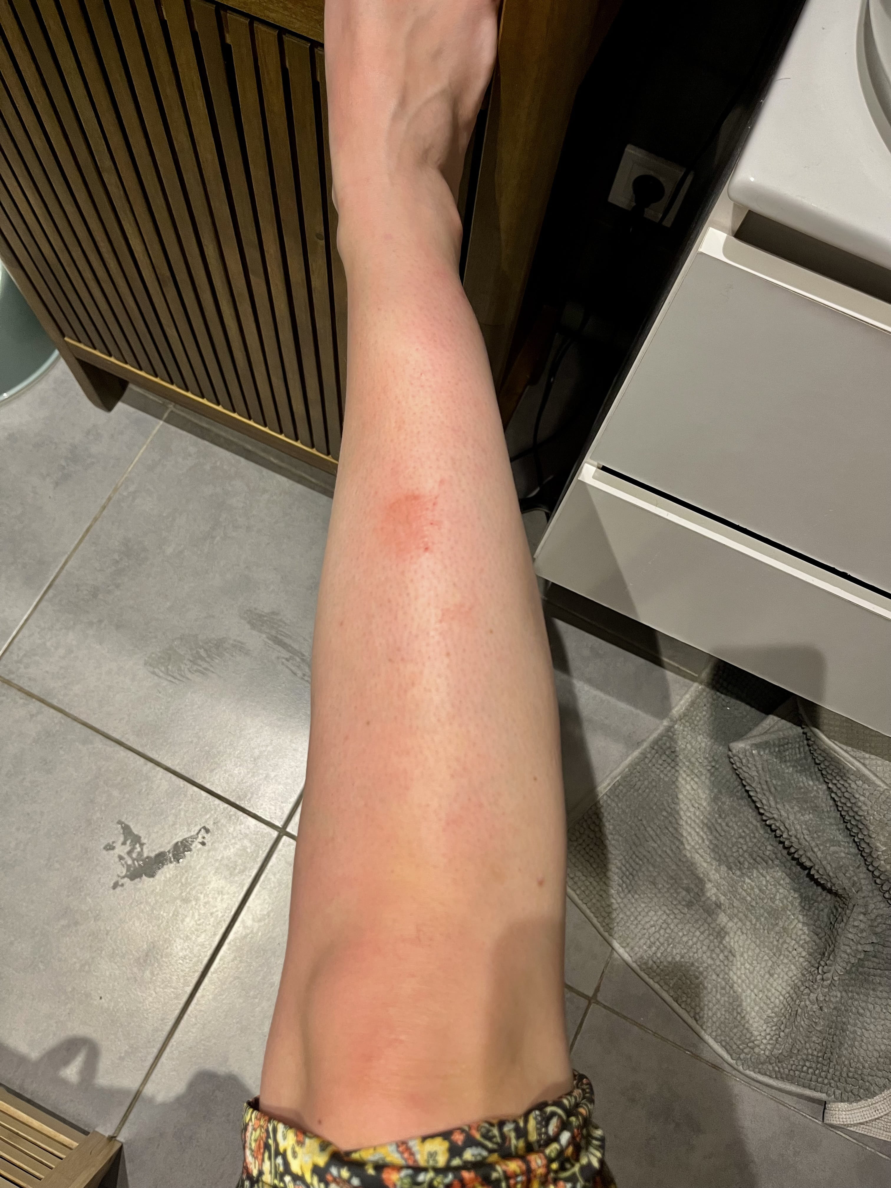 cela fait mnt 4 mois que j’ai une tache rose brune sur le devant du mollet.