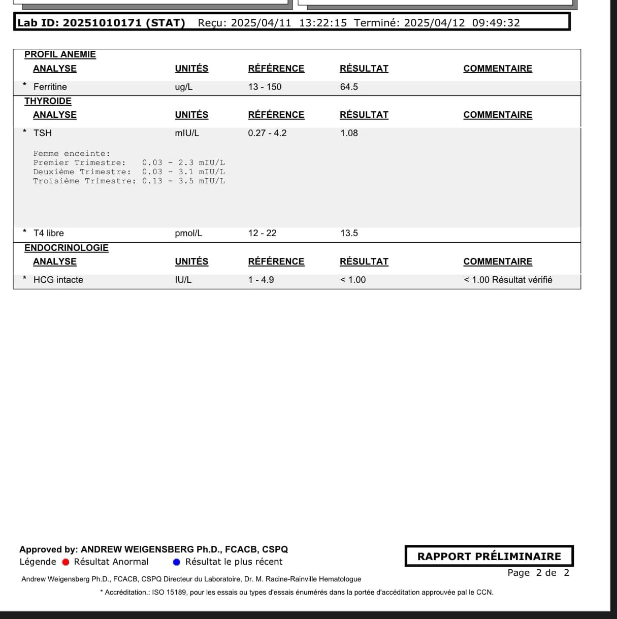 - Résulta prise de sang