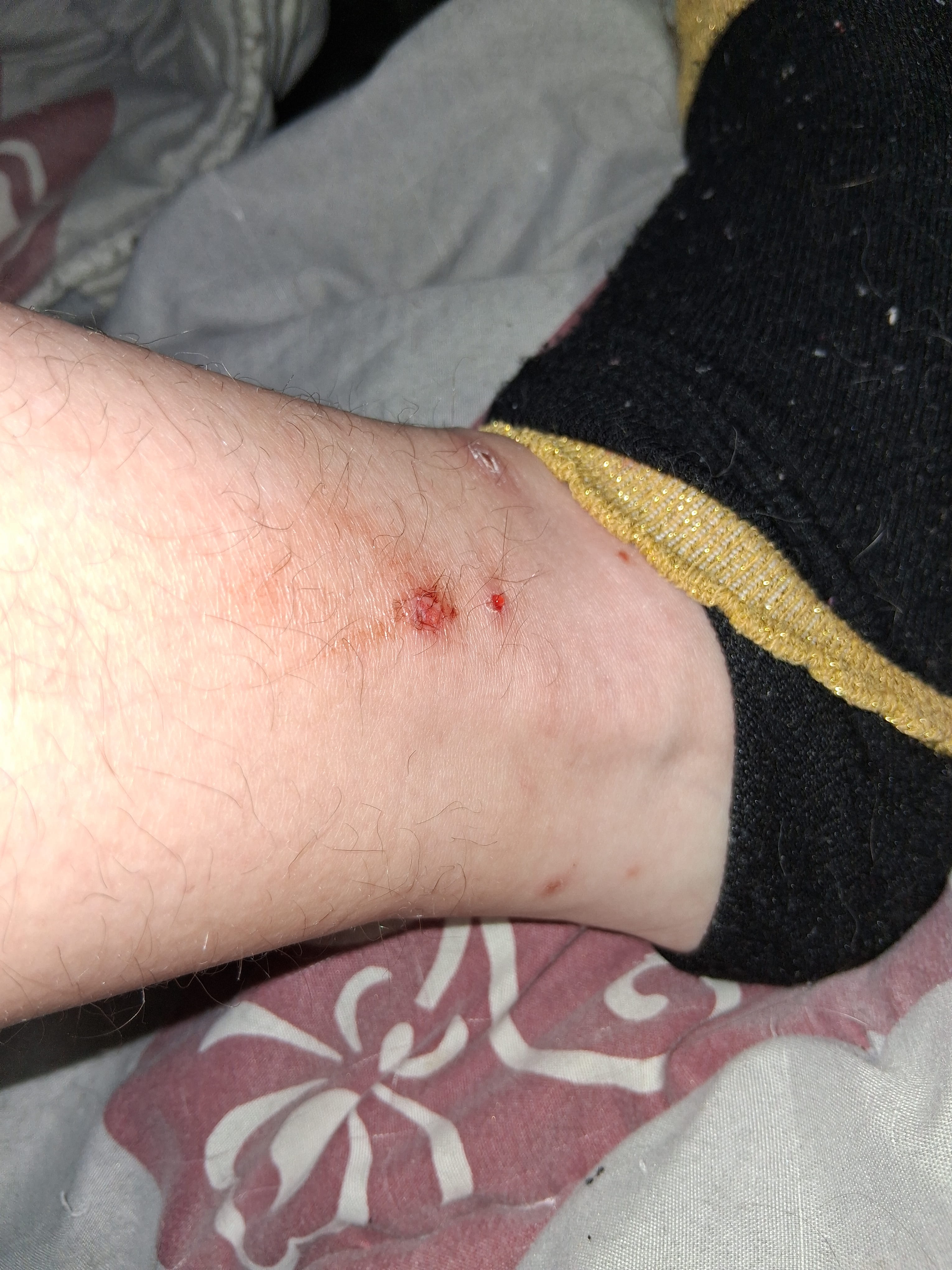 Désolé si je répond un peu tard et oui je desinfecte et je met de la crème à l'Aloevera et si ça me gratte autant c'est par ce que mon chat à des puces donc on à fait le traitement pour le chat on à nettoyer entièrement la maison mais malheureusement on à toujours des puces l'impression qu'on pourra jamais sens débarrasser c'est horrible.