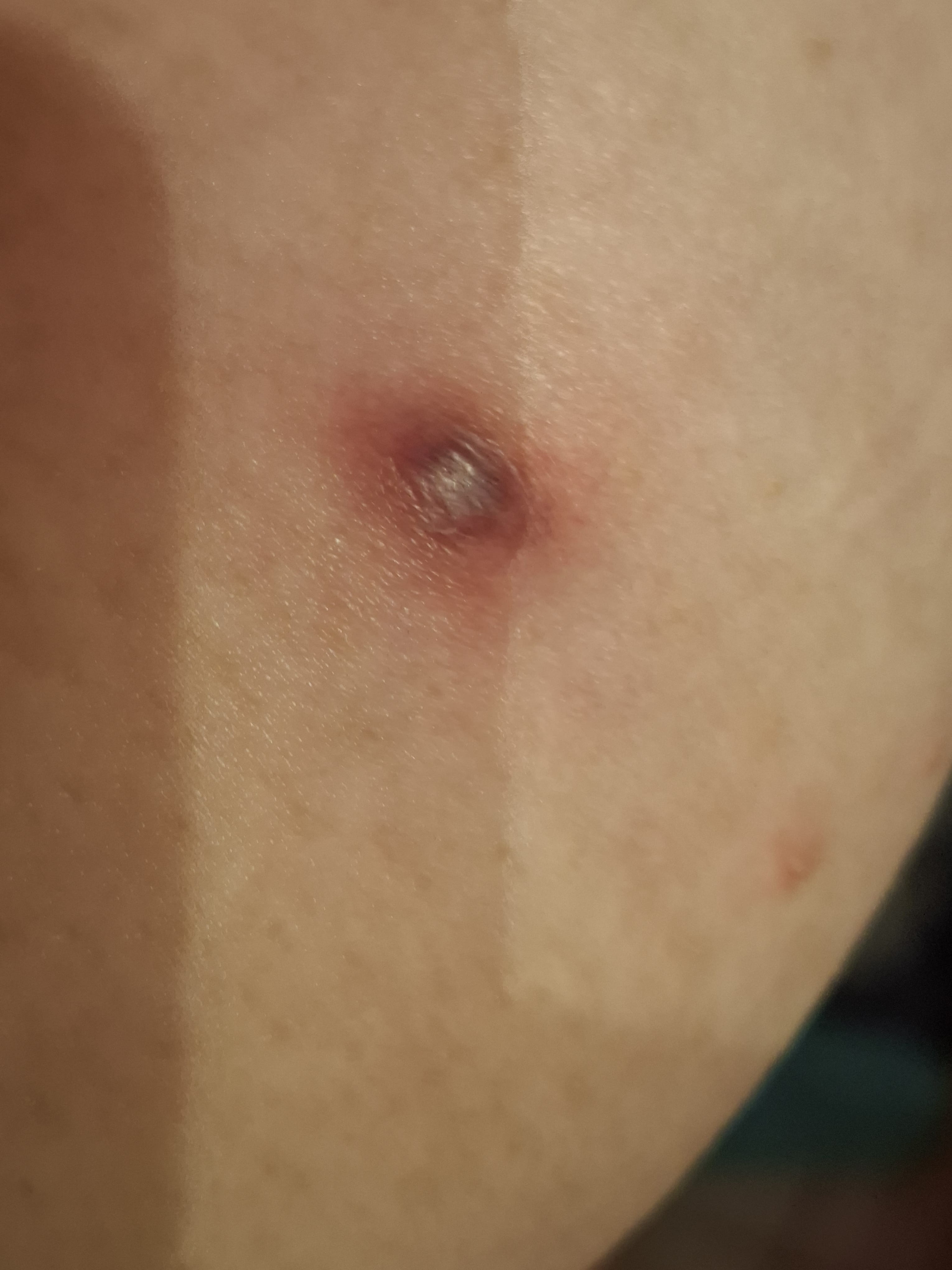 Ça fait depuis octobre que j’ai comme une sorte de gros bouton qui apparaît soit en dessous de la poitrine soit sur le côté du ventre (images ci dessous) au début ça apparaît comme un bouton et au fur et a mesure une croûte se forme et avec les habits se retirent et y a du pu qui sort et derrière ça quand c’est bien nettoyé y a comme une sorte de cratère qui reste et qui ne part jamais même en cicatrisant.