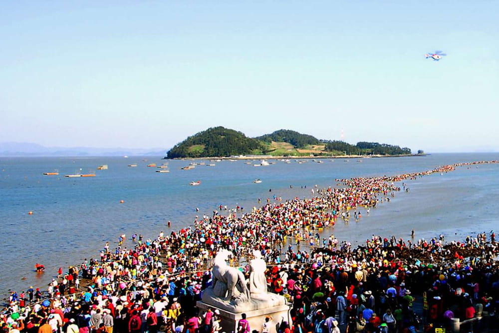 - Miracle biannuel à Jindo: la mer laisse place à un passage sablonneux