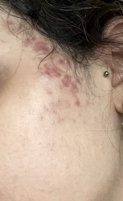 Depuis environ 6 mois, j’ai une poussée de boutons rouges inflammatoires sur le côté du visage, autour des oreilles et des joues. Cela m’inquiète car :