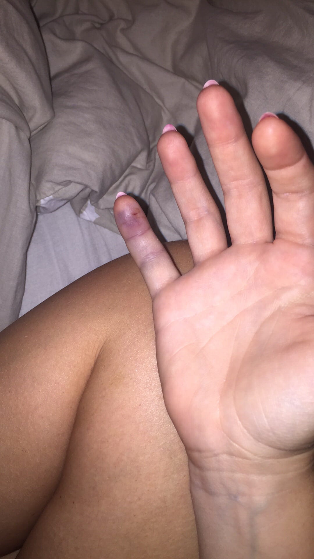 Voilà je me suis coincé l'auriculaire dans mon portail assez violemment, sur le moment ayant bu un peu j'ai pas fait trop attention. Ce matin ... La douleur m'a réveillée en puissance. Il est pas beau un peu gonflé mais sans plus et c'est surtout que j'ai mal non stop depuis le reveil et je ne peux pas du tout le bouger ... Ma mère me dit que c'est juste le contre coup j'ai quand même un sacré doute .. Bref j'aurai bien voulu un avis :)