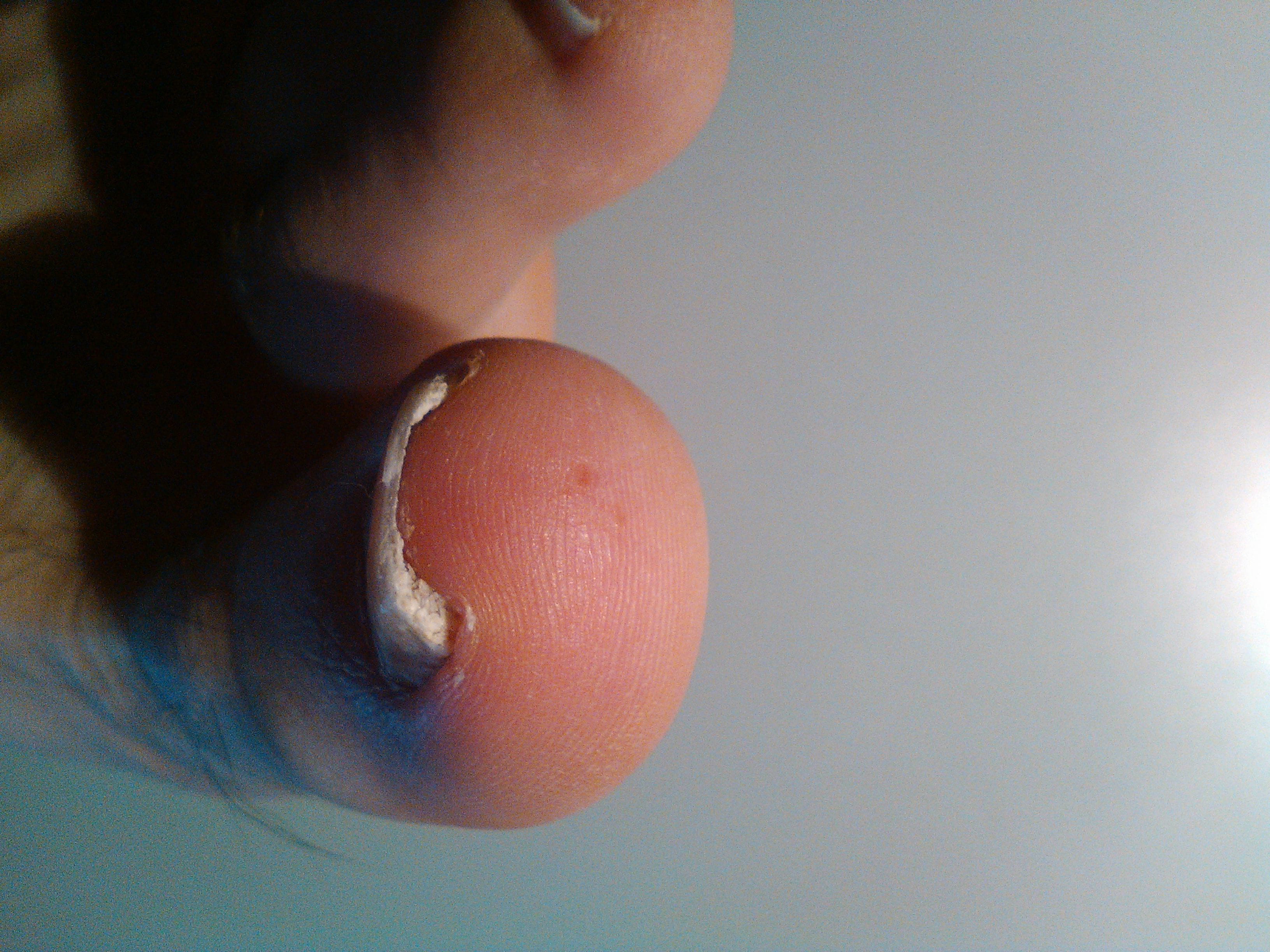 Voila, cela fait à peu près 10 mois que l'éxtremitée droite de l'ongle a viré au blanc et depuis 3 mois l’extrémité gauche a elle aussi viré au blanc.
