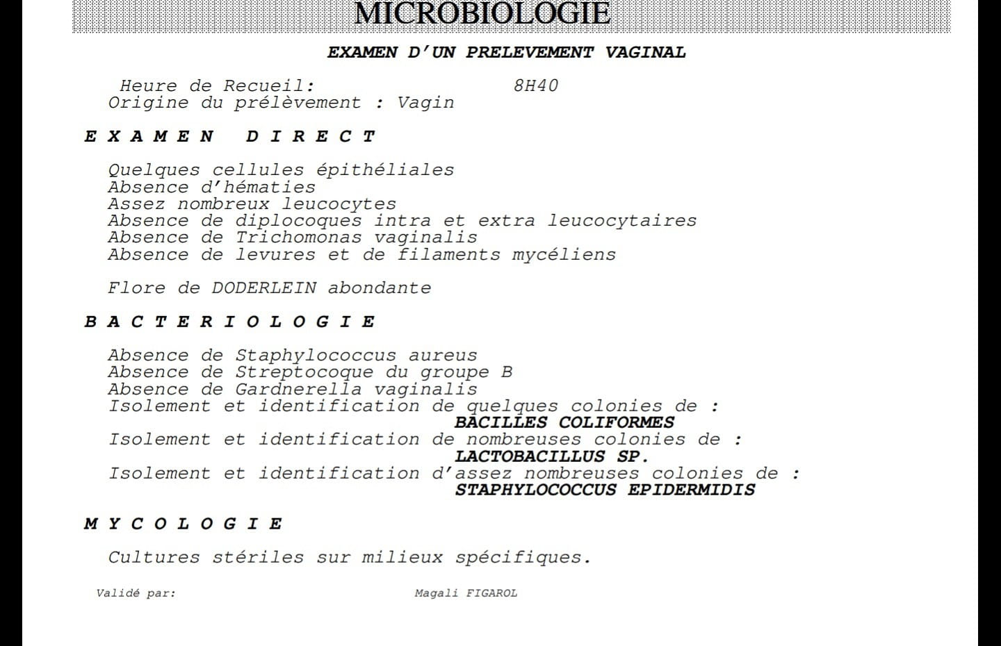 - Prélèvement vaginal résultats