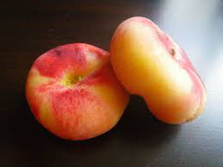 Il s'agit de la chair d'une pêche blanche ou jaune, avec un tout petit noyau. On la croque facilement.