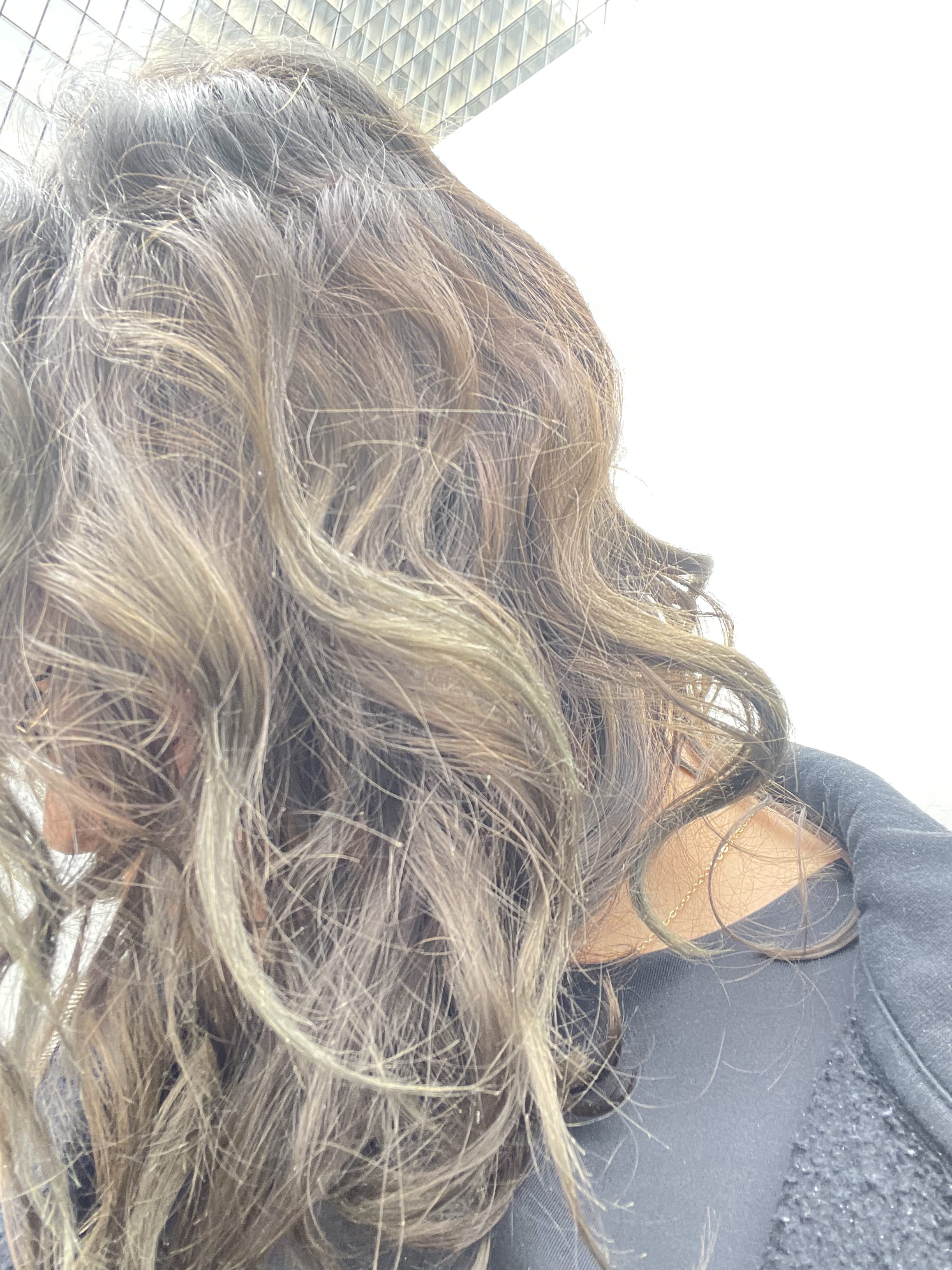 Cela fait 3 mois depuis ma première teinture au henné, je pense qu'en raison des vieux cheveux blonds en dessous et du retour du soleil, mes cheveux deviennent verts et brun clair.