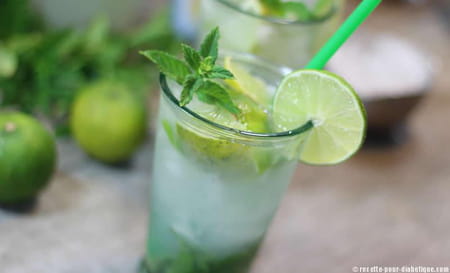 Testez cette recette (provenant de Diabète et bien-être) pour un Mojito sans glucides (ou vraiment très peu) et sans alcool:
