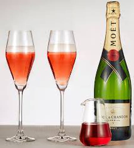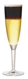 Pour la recette c'est 1/2 verre de bière brune + 1/2 verre de champagne bien frais -> verser les deux en même temps dans le verre + un filet de sirop de framboise sur le dessus...