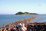 Miracle biannuel à jindo: la mer laisse place à un passage sablonneux
