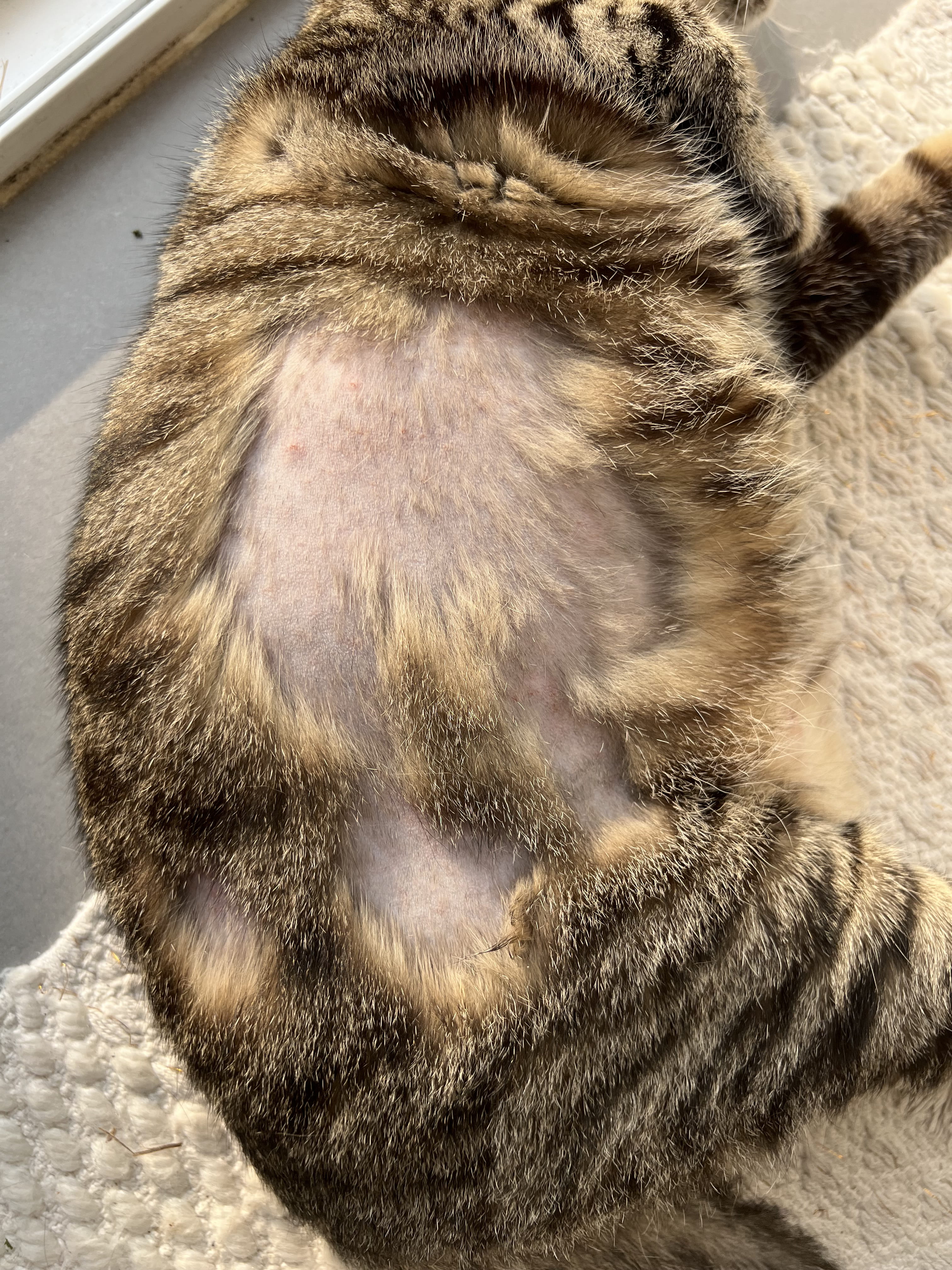 Plusieurs causes possibles : le stress, la gale, hormonal... Depuis quand a-t-elle ces symptômes ? Vous avez vu le vétérinaire je suppose ?